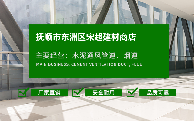 抚顺市东洲区宋超建材商店是一家专业生产厨房排烟道、卫生间通风道和全品类相关配件设施,以及运输与安装一体的企业。我公司现主要经营:烟道、机制水泥烟道、手工水泥烟道、止逆阀、无动力风帽等楼体工程所需全部品类排风设施的生产销售与安装。